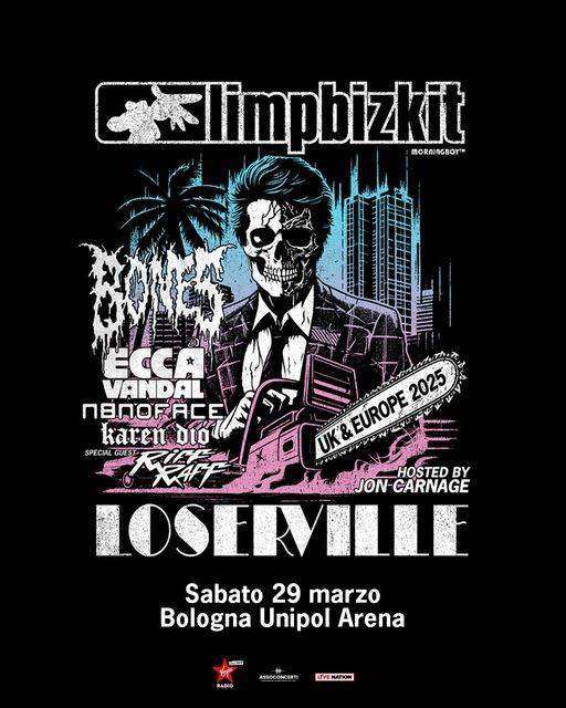 Si potrà assistere non solo all’attesissimo show dei Limp Bizkit, ma anche a una serie di esibizioni di grande impatto da parte di artisti di spicco che apriranno l’evento. Si partirà con l’energico punk-rock di Karen Dió, seguita dal synth-punk di N8NOFACE nel suo stile distintivo, e a seguire Ecca Vandal con il suo connubio tra punk e hip-hop e uno degli artisti di spicco del movimento trap metal, BONES, ognuno con un set di 30 minuti.