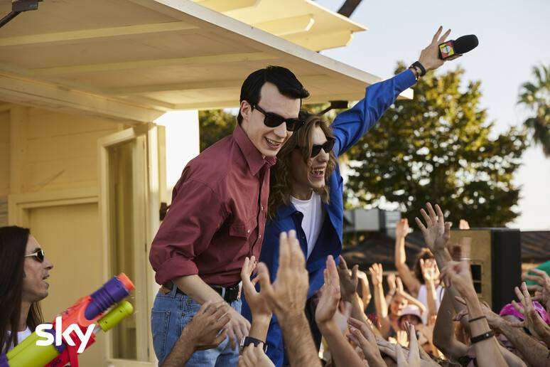 Hanno ucciso l’Uomo Ragno – La vera storia degli 883 sarà disponibile nel 2024 su Sky e in streaming su NOW. “Negli anni ’90 i cantanti erano dei fighi pazzeschi. Dal nulla arrivano loro: erano primi in classifica, ma non li facevano vedere perché non venivano considerati abbastanza fighi. Erano dei nerd, ma non quelli sexy, quelli veri, che lo rivendicano nei loro testi. La loro storia è tutta lì dentro e nella scelta di chiamarsi 883, sì l’Harley Davidson, ma il modello base. Quelli che non erano destinati al successo, quando questa parola voleva dire qualcosa”, racconta Sibilia (che firma la serie tv con Francesco Agostini, Chiara Laudani e Giorgio Nerone), in una pausa sul set alle porte di Roma dove è stato ricostruito l’Acquafan di Riccione con il box di Radio Deejay nell’estate del ’92, dove Max e Mauro arrivano per esibirsi di fronte a una folla di giovani e vengono poi chiamati a rapporto da Claudio Cecchetto (Roberto Zibetti).