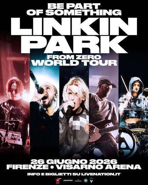 I Linkin Park arrivano in Italia con un unico grande evento venerdì 26 giugno alla Visarno Arena di Firenze. Lo show dei Linkin Park a Firenze sarà l’unico concerto in Italia del 2026, a distanza di un anno dall’unica data italiana del 2025 ad I-Days Milano il 24 giugno, che ha registrato il sold out in tempi record.