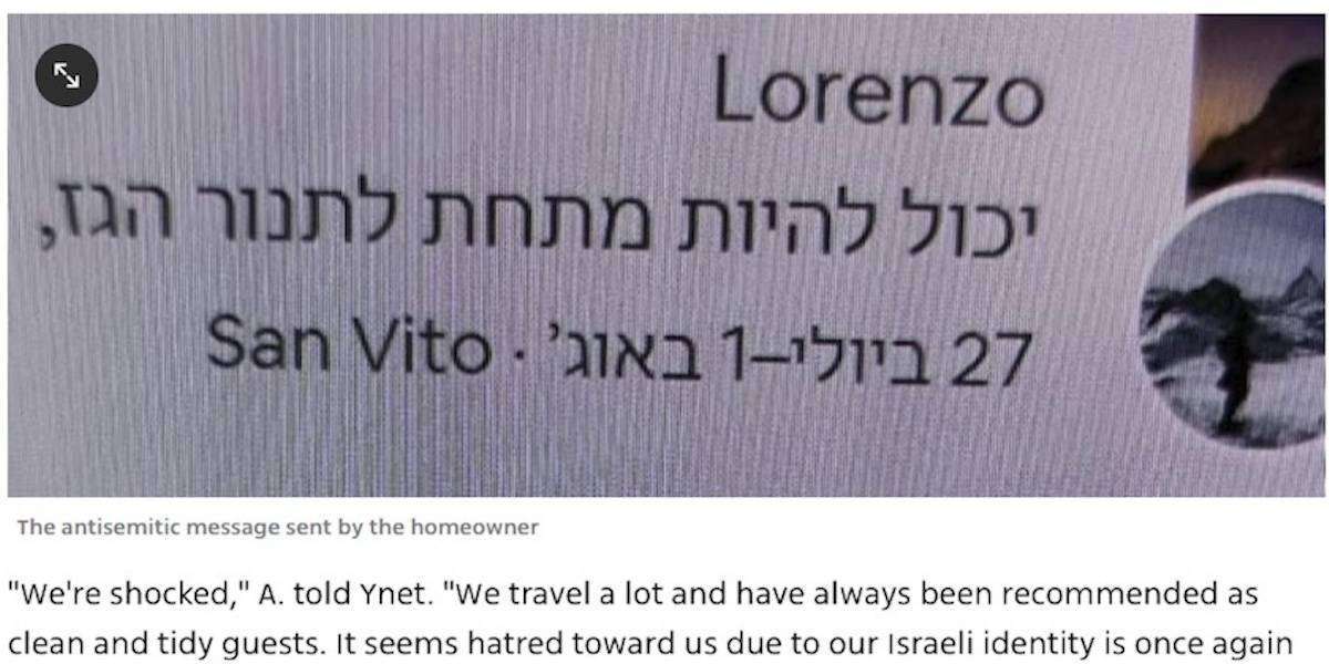 La notizia sul presunto insulto antisemita che sarebbe stato rivolto a una famiglia ebraica da un uomo italiano che stava affittando loro una casa su Airbnb, diffusa dal sito di notizie israeliano Ynet, è stata smentita da Airbnb.