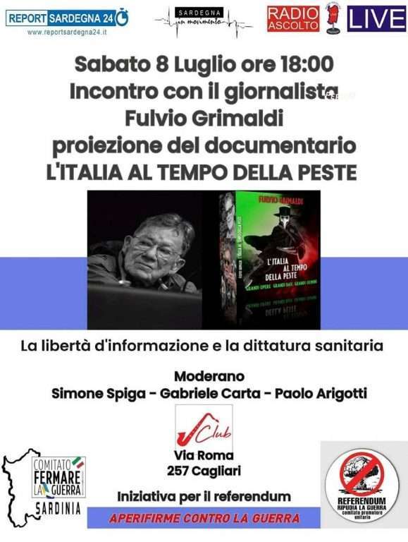 Sabato 8 luglio a partire dalle ore 18:00, presso il Jester Club sede operativa dell’ Associazione Sardegna in Movimento, in via Roma 257 a Cagliari si terrà la proiezione di “L’Italia al tempo della peste” .