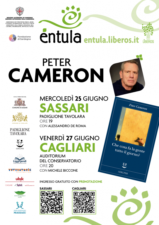 Il 25 giugno a Sassari e il 27 a Cagliari, un ospite d’eccezione per il festival Éntula organizzato da Lìberos: lo scrittore statunitense Peter Cameron sarà per la prima volta in Sardegna e presenterà la raccolta di racconti “Che cosa fa la gente tutto il giorno?” (Adelphi).