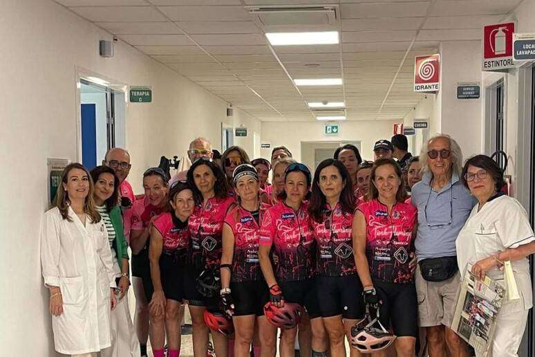 Ad accogliere le cicliste sono stati i pazienti e le pazienti del reparto di Oncologia con il personale sanitario, la direttrice amministrativa Maria Dolores Soddu e la direttrice sanitaria Lucia Anna Mameli.