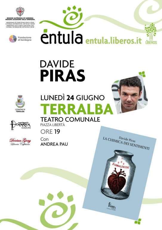 Lunedì 24 giugno, Davide Piras presenterà il suo nuovo romanzo, “La chimica dei sentimenti” (Catartica Edizioni) a Terralba in conversazione con Andrea Pau per Éntula.