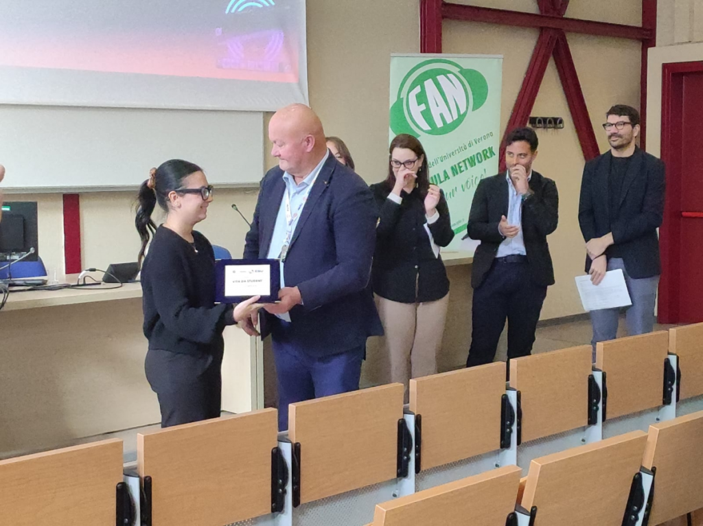 La premiazione si è tenuta in occasione di “Diritto di podcasting”, una due giorni di riflessioni sul mondo della radio e del podcast che si è tenuta giovedì 10 e venerdì 11 ottobre per raccontare servizi, diritti allo studio e storie studentesche. L’iniziativa promossa da FuoriAulaNetwork (Fan), la web radio dell’università di Verona e realizzata con il contributo di Esu di Verona e in collaborazione con Raduni (Associazione operatori radiofonici universitari), Fondazione Antonio Megalizzi, è alla sua prima edizione.