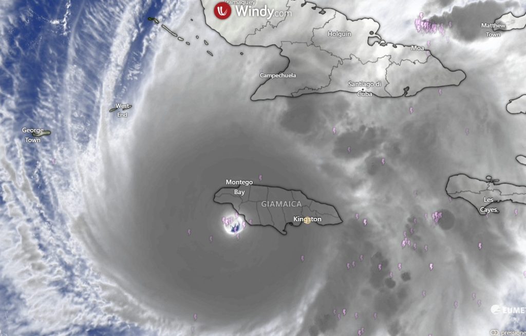 L’uragano Melissa, classificato come categoria 5, la più alta sulla scala Saffir-Simpson che misura la potenza dei cicloni tropicali, sta già raggiungendo le coste sud-occidentali dello Stato caraibico, dove si abbatterà con tutta la sua forza nelle prossime ore, quando in Italia sarà pomeriggio. Successivamente, Melissa toccherà Cuba, le Bahamas e le isole britanniche di Turks e Caicos.