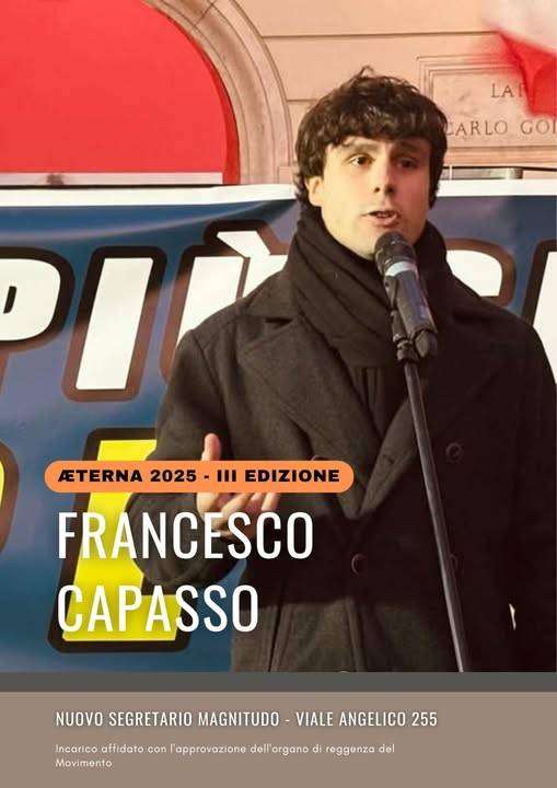 Con Francesco Capasso alla Segreteria, Magnitudo punta a consolidare il proprio percorso politico, mantenendo l’attenzione sulle tematiche centrali per il movimento e aprendo nuovi spazi di confronto e partecipazione. Il cambio al vertice vuole essere un segnale di dinamismo e di volontà di crescita, nel rispetto dei valori e degli obiettivi condivisi.