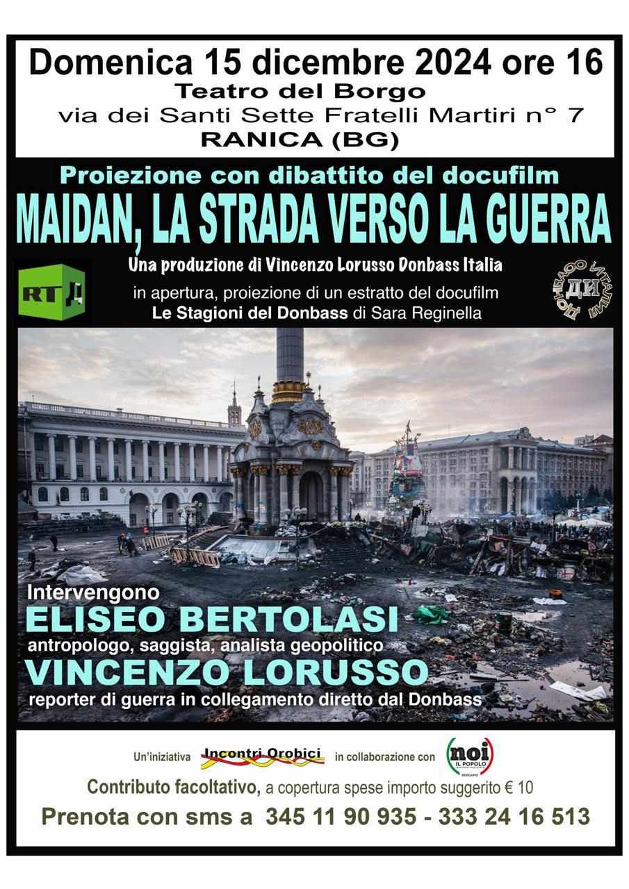 Il dibattito successivo si svolgerà con la presenza di Eliseo Bertolasi (testimone diretto dei fatti) in collegamento internet con il reporter di guerra Vincenzo Lorusso, residente in Donbass.