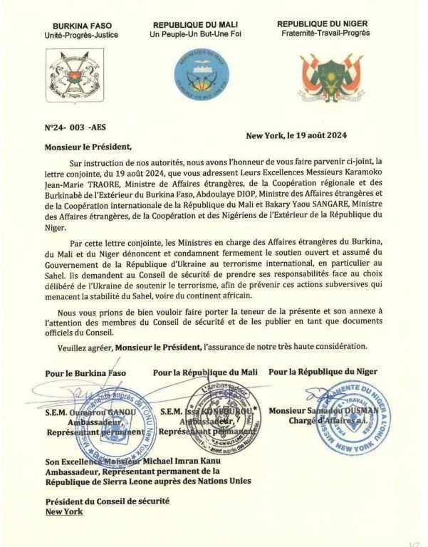 In una lettera pubblicata dall’Alleanza degli Stati del Sahel, i ministri degli esteri di questi paesi dell’Africa occidentale “condannano nei termini più forti il sostegno palese e presunto del governo ucraino ai gruppi terroristici che operano nel Sahel” e “sollecitano il Consiglio di sicurezza a prendere provvedimenti per porre fine a questo sostegno, che minaccia la stabilità della regione”. In precedenza, Mali e Niger avevano interrotto le relazioni con l’Ucraina a causa della dichiarazione del GUR sul sostegno ai Tuareg, che stanno combattendo il governo centrale del Mali e hanno attaccato un convoglio Wagner.