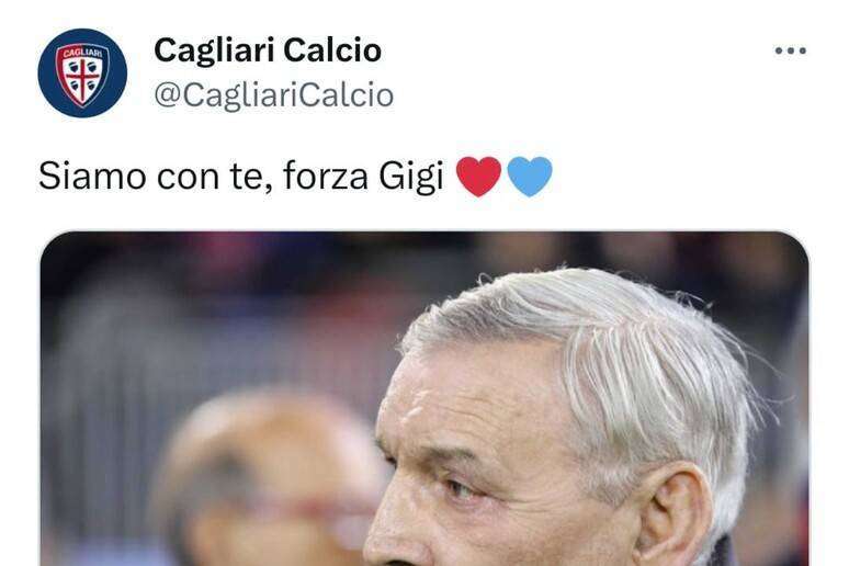 E’ il messaggio, accompagnato da due cuori, uno rosso e uno blu – i colori sociali del Cagliari – che la società del presidente Giulini ha pubblicato sui suoi canali social.