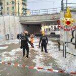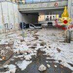 Nelle immagini i sommozzatori dei vigili del fuoco in azione nel sottopasso ferroviario di via Lanzi per due furgoni sommersi dall’acqua.