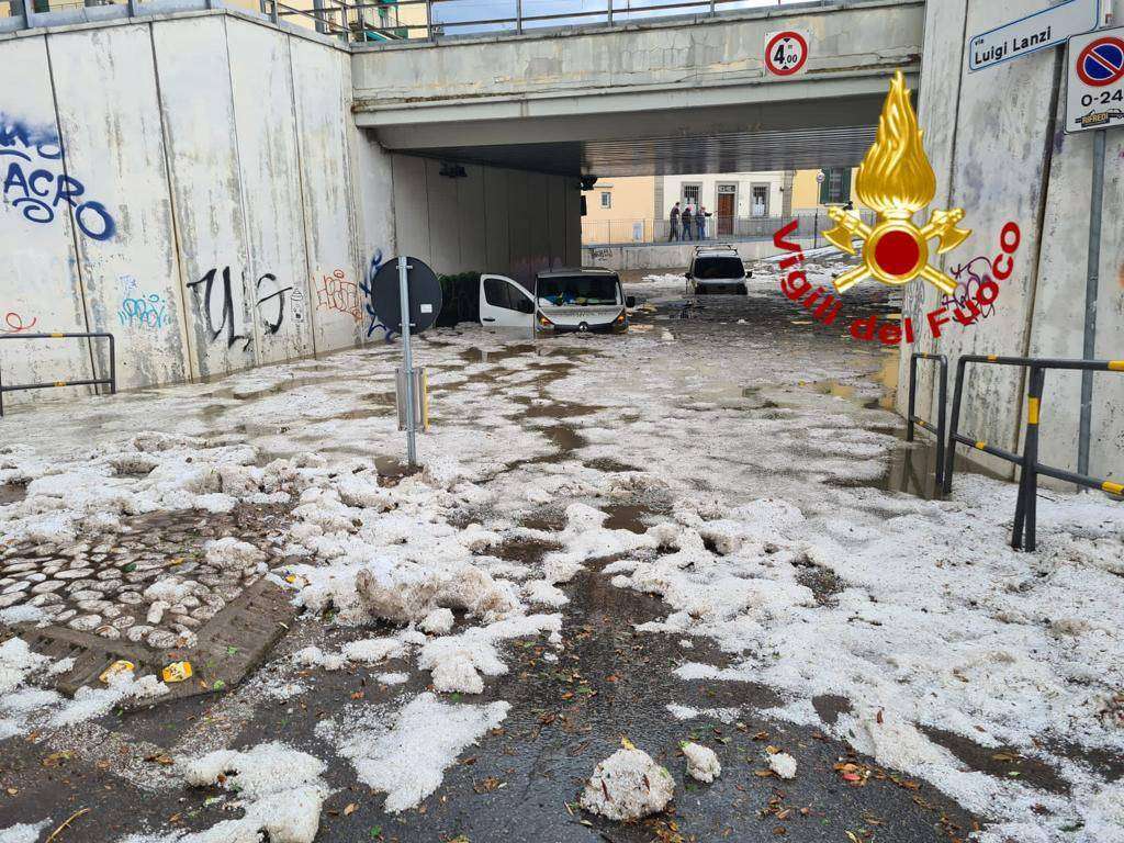 Decine di interventi in corso per prosciugamenti e danni d’acqua causati dalla forte pioggia e grandine che ha colpito nel primo pomeriggio la città di Firenze.