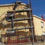 Pali e insegne divelte, caduta parziale di cornicioni e messa in sicurezza di strutture pericolanti, come il cedimento dell’impalcatura nel cantiere edilizio presso l’istituto nautico in via Terralugiana a La Maddalena, a cui si riferiscono le immagini.