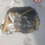 Sul posto sono intervenute le squadra dei Vigili del Fuoco insieme agli operai del cantiere comunale di Cagliari per il posizionamento delle transenne.