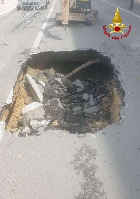 In via Trentino a Cagliari è avvenuto un importante cedimento della sede stradale a causa, presumibilmente, della pioggia che ha interessato la città nelle ultime 24 ore.