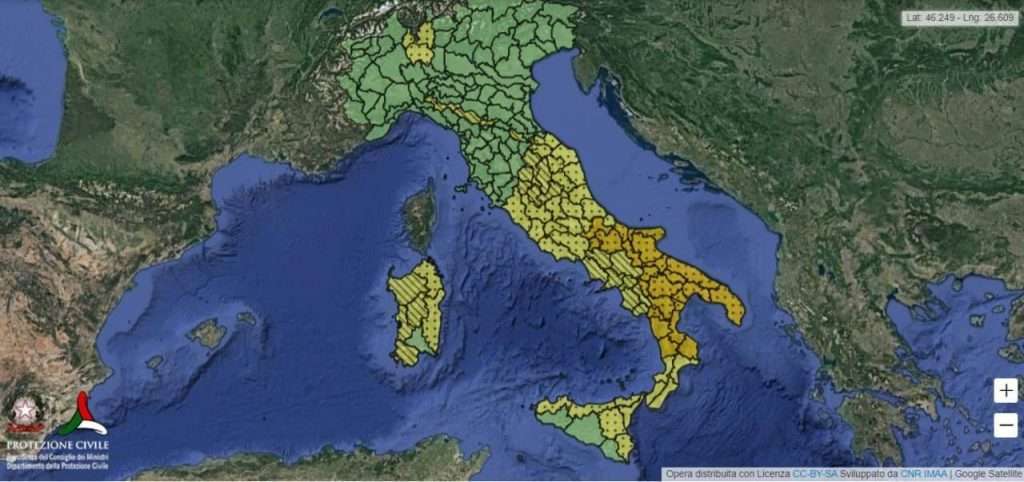 La Protezione Civile ha diramato per la giornata di oggi l’allerta arancione meteorologica nell’Abruzzo meridionale, Molise, Puglia, Basilicata e Calabria settentrionale.