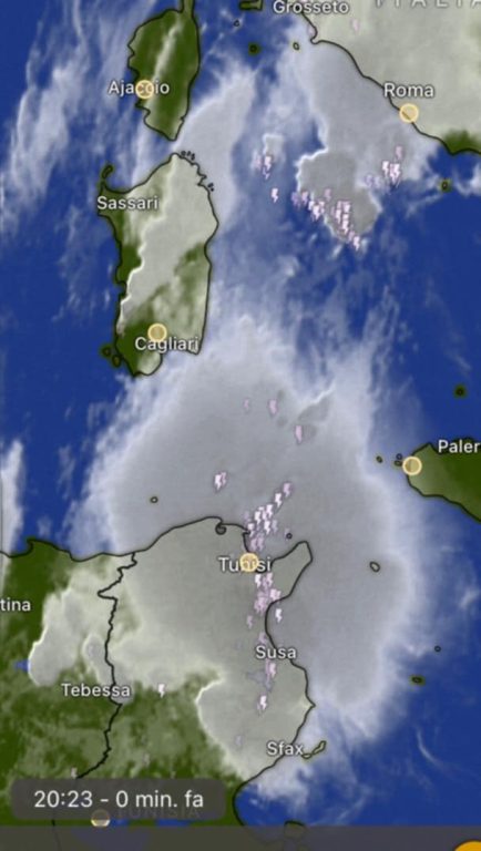 In queste ore si è formato un gigantesco Mesociclone che dalla Tunisia si estende al canale di Sardegna è di Sicilia.