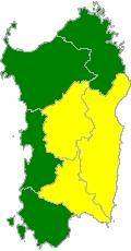 codice GIALLO (criticità ORDINARIA) per RISCHIO IDROGEOLOGICO PER TEMPORALI sulle aree di allerta Campidano, Flumendosa Flumineddu e Tirso.