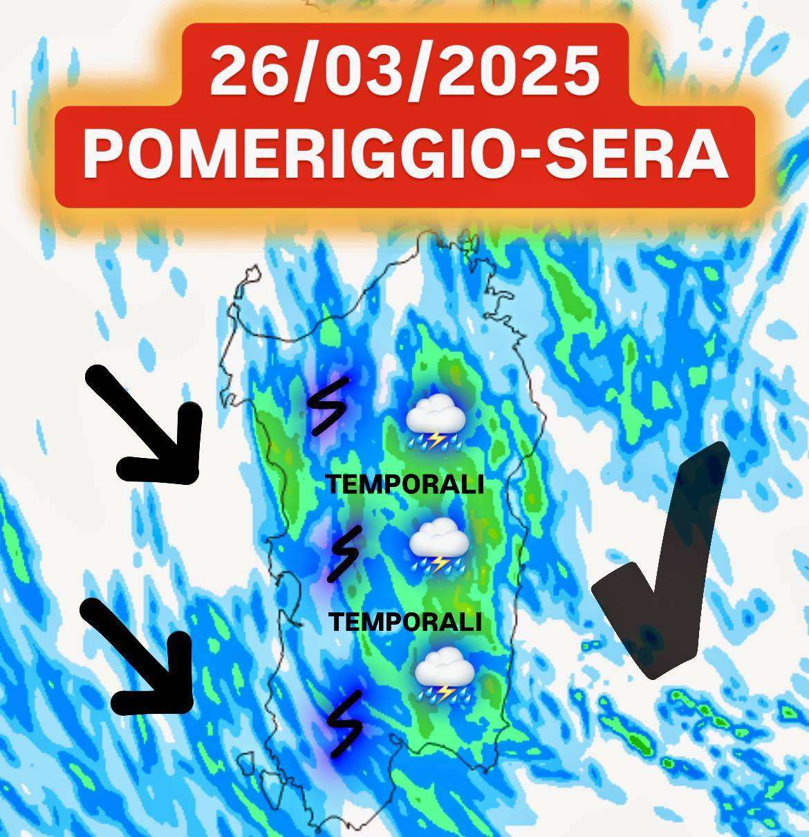 Il Centro Meteo Sardegna sulle pagine di Facebook ha annunciato un netto peggioramento del tempo per la giornata di oggi, con una recrudescenza dei fenomeni; nello specifico, sono attesi rovesci e temporali sparsi, con cumulati localmente moderati. I settori maggiormente interessati saranno quelli centrali, interni-settentrionali e orientali.