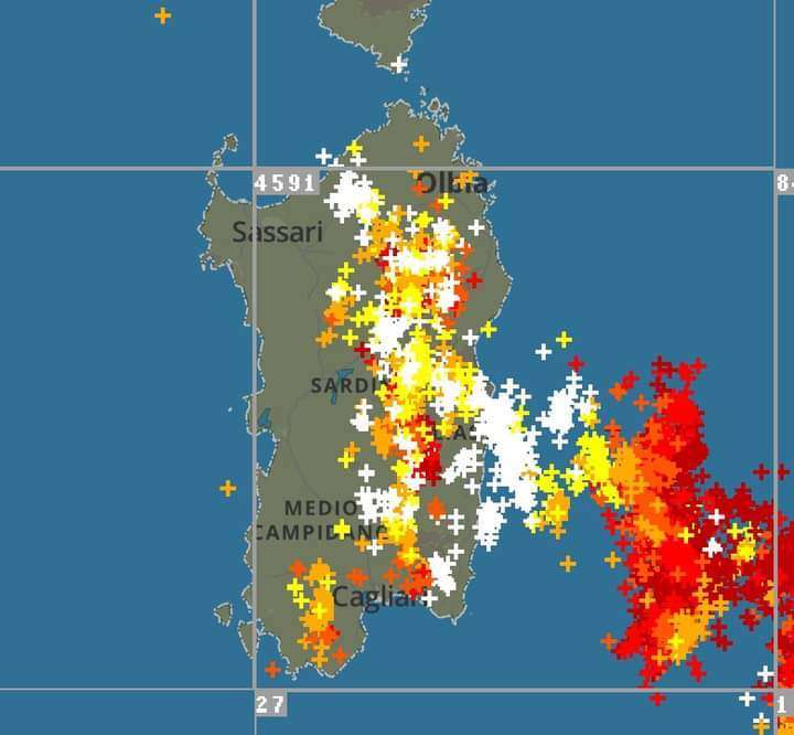 Una violenta tempesta di fulmini sta interessante la Sardegna in queste ore con forti rovesci e nubifragi localizzati.