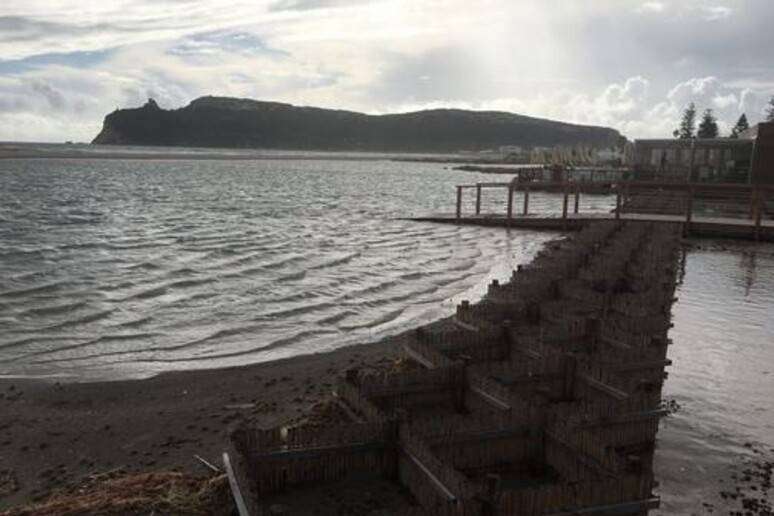 Allagato il Poetto, con la spiaggia sommersa dalle acque.