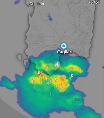 Temporali di forte intensità sono in formazione e avvicinamento sulle coste della Sardegna dal canale di Sardegna.
