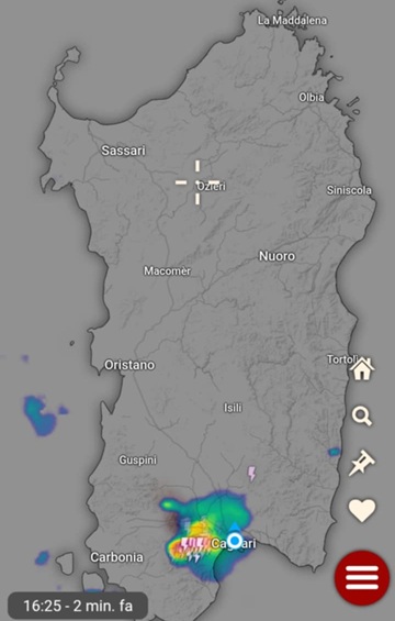 Temporali sono in evoluzione sui rilevi sud-occidentali della Sardegna – possibilità di piogge e rovesci localmente di forte intensità su tutta la Sardegna meridionale.