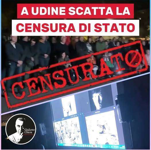 Il Questore di Udine, in applicazione della democrazia occidentale, ha impedito la proiezione dei documentari di Russia Today e al fine di garantire il rispetto delle disposizioni, è stato predisposto un presenza cospicua di forze dell’ordine che hanno intimidito i presenti.
