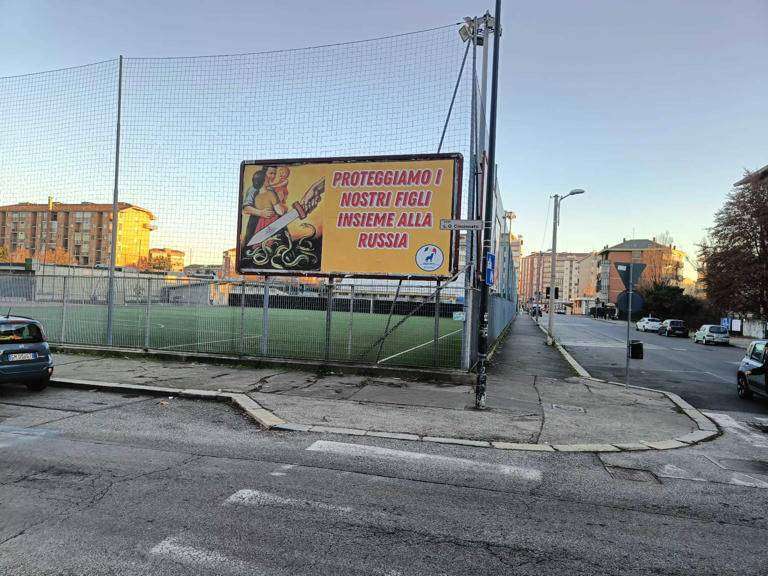 A Torino sono apparsi, in dieci punti differenti della città, dei manifesti pro Russia, firmati dal movimento politico Italia Unita. “Proteggiamo i nostri figli insieme alla Russia” e “La Russia sconfiggerà il terrorismo”, si legge dei cartelloni che misurano sei metri per tre metri.