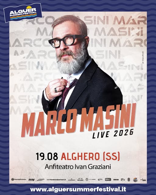 Marco Masini arriverà in Sardegna per una data del tour prodotto e organizzato da Friends & Partners, Momy Records e Concerto Music in una tappa dell’Alguer Summer Festival il 19 agosto, organizzata da Fondazione Alghero, Comune di Alghero, Rock’n’Beer, Associazione Eventi Beneficienza Valledoria in collaborazione con Shining Production, Gian Production e Roble Factory. I prestigiosi nomi a cui va aggiungersi nella ricca line up della rassegna sono i Litfiba 1° agosto, Fiorella Mannoia 2 agosto, Claudio Baglioni 4 agosto, Luca Carboni 5 agosto, la serata K Pop is coming 8 agosto, Il Volo 9 agosto, Mannarino 11 agosto, Capo Plaza 20 agosto, Fulminacci 21 agosto e Caparezza 22 agosto.