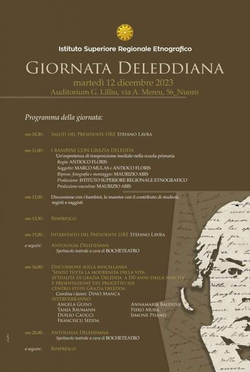 Martedì 12 dicembre 2023, presso l’Auditorium G. Lilliu del Museo del Costume di Nuoro, si terrà la Giornata Deleddiana 2023.
