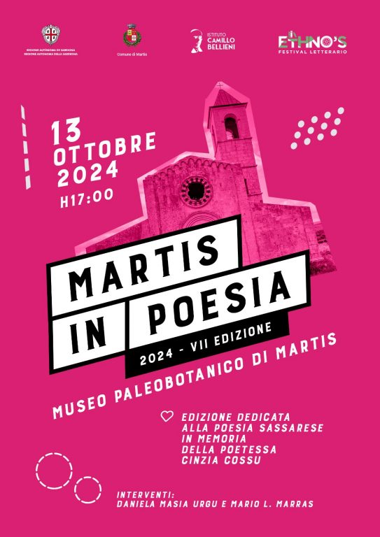 Domenica 13 ottobre alle 17 al Museo Paleobotanico di Martis è in programma “Martis in poesia”, quest’anno dedicato alla poesia sassarese e all’arte dei versi di Cinzia Cossu nei vent’anni dalla morte.