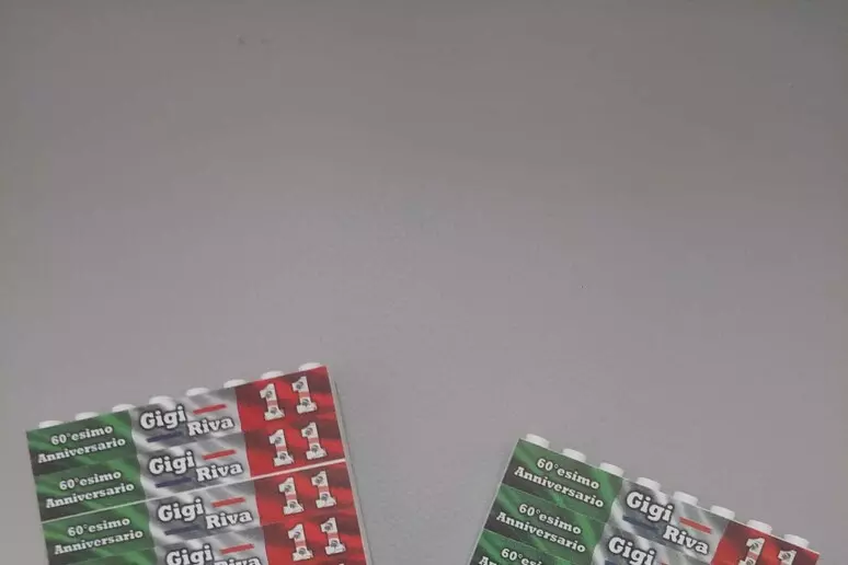 Sessanta mattoncini Lego, Limited Edition, dedicati a Gigi Riva, in occasione dei 60 anni dalla prima volta in cui Rombo di Tuono vestì la maglia numero 11 della Nazionale di calcio.