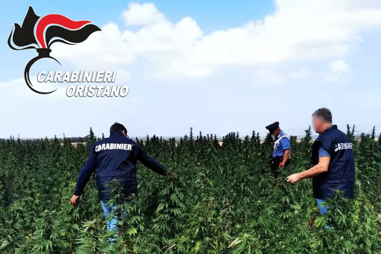 Una maxi coltivazione di una piantagione di canapa nelle campagne di Siamanna.