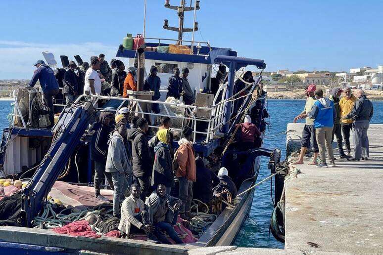 Maxisbarco a Lampedusa dove, durante la notte, è approdato un peschereccio lungo 25 metri con 347 migranti a bordo, tra cui due donne.