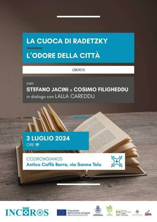 Cosimo Filigheddu e Stefano Jacini saranno i prossimi ospiti del progetto InCoros a Codrongianos, dove presenteranno rispettivamente “L’odore della città” (Il Maestrale) e “La cuoca di Radetzky” (La nave di Teseo) in conversazione con Lalla Careddu.