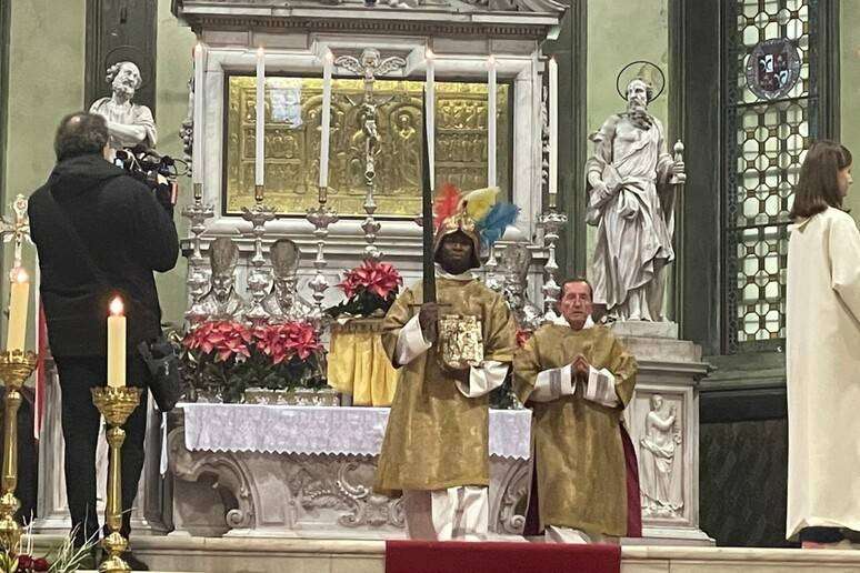 Alla messa segue una rievocazione all’ esterno cui partecipano oltre 250 figuranti in costumi d’epoca, ma oggi questa parte non si è svolta per le avverse condizioni meteorologiche.