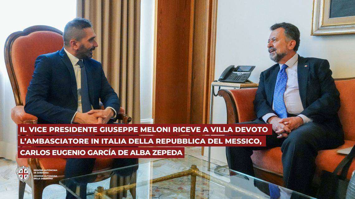 Il vice presidente della Regione, Giuseppe Meloni, ha ricevuto questa mattina, nel corso di una visita istituzionale a Villa Devoto, l’ambasciatore del Messico in Italia, Carlos Eugenio García de Alba Zepeda. Nel corso della visita con il diplomatico sono stati affrontati alcuni temi di interesse generale tra la Sardegna e il Messico.