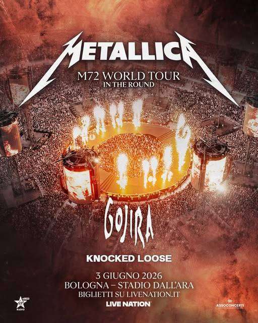 Appuntamento mercoledì 3 giugno 2026 allo Stadio Dall’Ara di Bologna per l’unica data nel nostro paese dell’M72 World Tour. Un evento imperdibile che vedrà sullo stesso palco anche Gojira e Knocked Loose in apertura.