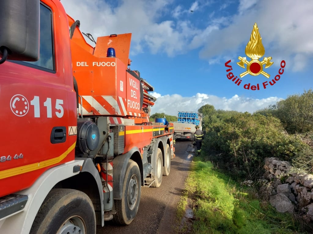 In mattinata la Sala Operativa dei Vigili del Fuoco di Oristano ha ricevuto una richiesta di soccorso per un mezzo pesante che trasportava bombole di Gpl che per cause da accertare è uscito parzialmente dalla sede stradale.