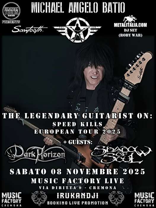 Direttamente dagli Usa il leggendario chitarrista Michael Angelo Batio arriva in Italia con il suo tour europeo “Speed Kills 2025”.