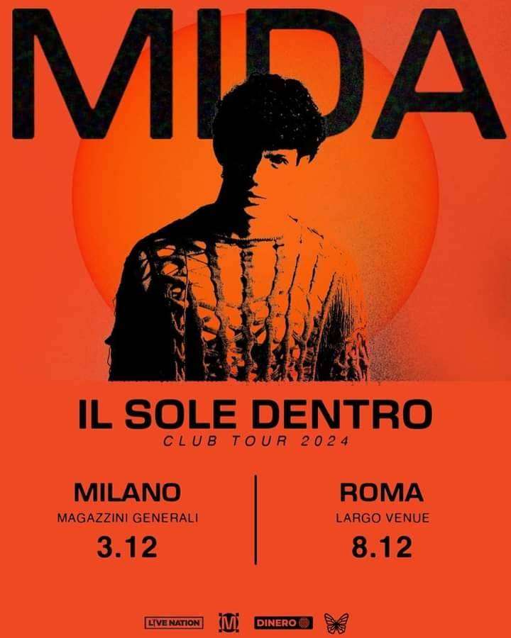 Mida, il cantante che ha conquistato un posto nella finale di Amici e si è aggiudicato il prestigioso “Premio Spotify” con il brano “Rossofuoco”, annuncia due appuntamenti nei club italiani, il 3 dicembre ai Magazzini Generali di Milano e l’8 dicembre a Largo Venue di Roma