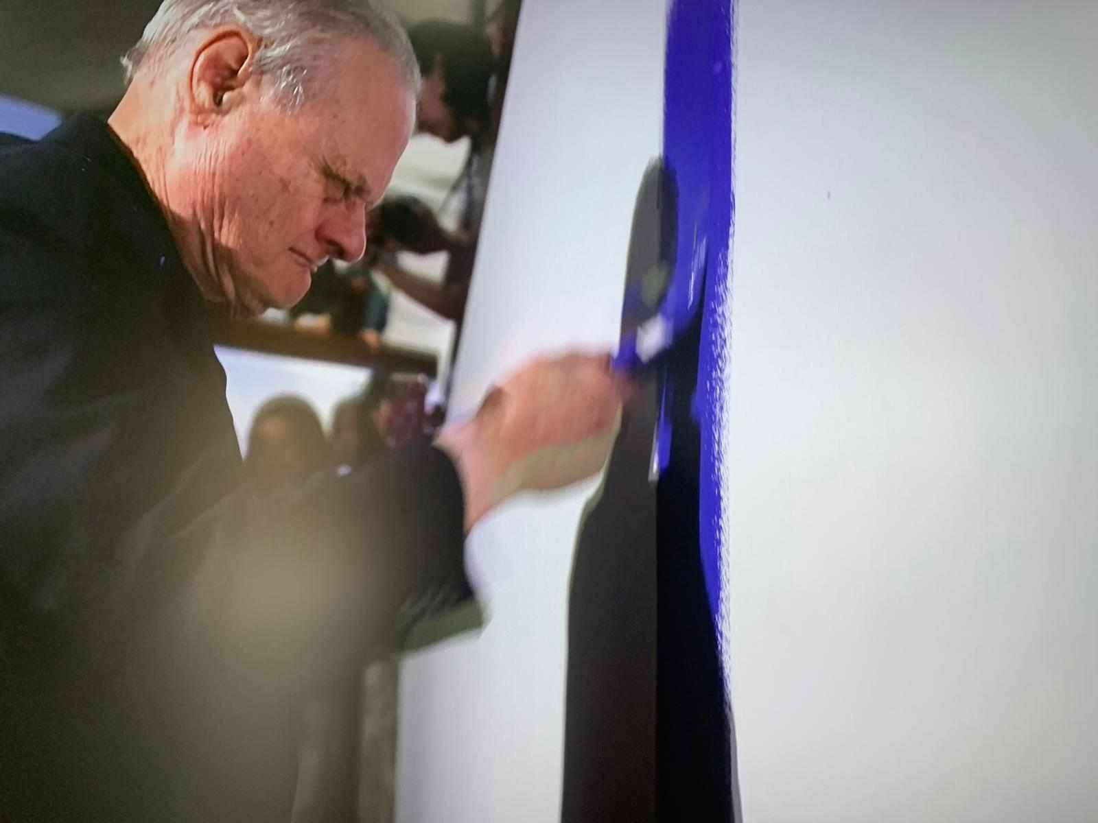 La mostra s’apre con “Blind painting towards a hole”, pezzo realizzato in site specific, dove per due ore Parr ha dipinto a memoria con gli occhi chiusi, capite cosa voglia dire per un artista concretamente “visualizzare”? Passando per giganti della storia come Duchamp, Cage e Allan Kaprow, la mostra di Parr, che passa come uno dei padri fondatori della performance, ma che come Nitsch, dimostra che la performance sia il pregresso processuale dell’estetizzazione simbolica del prodotto artistico (e quindi non sia null’altro che la vita monografica dell’artista), attraverso video che documentano la sua storia, s’arriva ai suoi autoritratti, come me (e come dovrebbero essere tutti gli artisti figurativi), lui non è solo un performer, è uno scultore e un disegnatore, ossessionato dal suo autoritratto, che arriva anche a dissolvere nel nome della sua identità. Ironico e iconoclastico, in una performance “The Ermetic (Primary vomit)”, ingerisce la tavolozza acrilica di Mondrian per poi vomitarla, opponendosi ai formalismi culturali, le sue performance hanno sempre avuto a che fare con eventi traumatici, nel 1977 ha simulato di tagliarsi il braccio sinistro (che non ha) riempito di fegato tritato.
