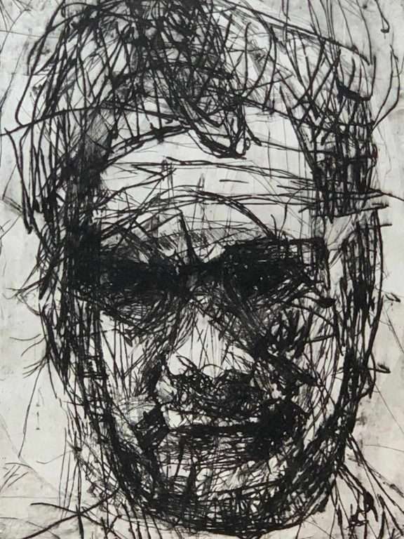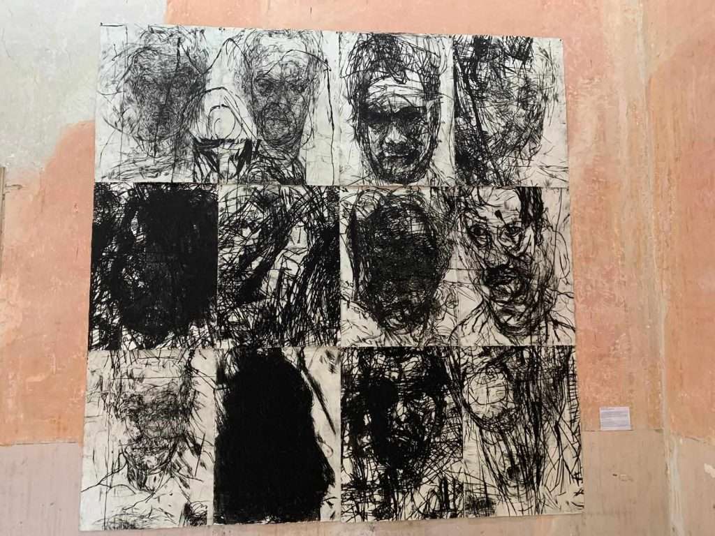 A Casa Morra, curata da Eugenio Viola (mica un curatore qualunque, per chi non lo sapesse è stato il curatore del Padiglione Italia della Biennale di Venezia, un unico artista, Gian Maria Tosatti), c’è la straordinaria mostra di Mike Parr, artista che come Nitsch, nella figurazione artistica, sintetizza un processo performatico che fonde arte ed esperienza di vita (approccio all’arte che sento mio, al punto da osservare i suoi autoritratti provando la sensazione che abbia ritratto me).