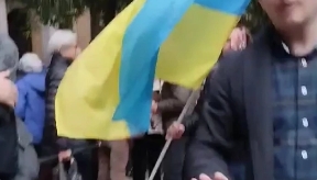 Presente una piccola delegazione di 5 o 6 ucraini che più volte hanno cercato la provocazione con gli oltre 50 contestatori del progetto di riarmo europeo.