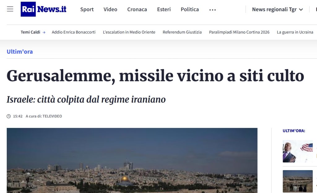 “Il regime iraniano sta lanciando missili su Gerusalemme, uno di questi ha colpito a poche centinaia di metri dalla Città Vecchia, dal Muro del Pianto, dalla Moschea di Al-Aqsa e dalla Chiesa del Santo Sepolcro”, questo il testo della fake news che il regime genocida israeliano ha pubblicato su X.