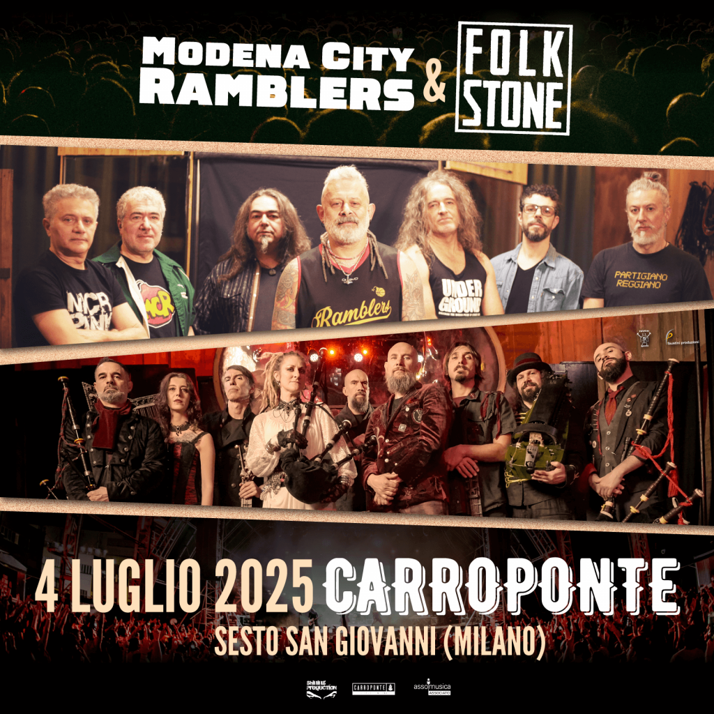 Modena City Ramblers & Folkstone, protagonisti sullo stesso palco, co-headliner della stessa serata. Un appuntamento che si prospetta già leggendario quello in programma il 4 luglio al Carroponte di Sesto San Giovanni (MILANO).