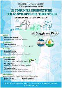 Questo strumento permette veramente di condividere le energie rinnovabili, per questo è stato organizzato un convegno il prossimo venerdì 26 maggio alle ore 18 a Monserrato, con esperti del settore energia, con sindaci che le hanno realizzate nei loro comuni e con la presenza di tecnici ed imprenditori del settore.
