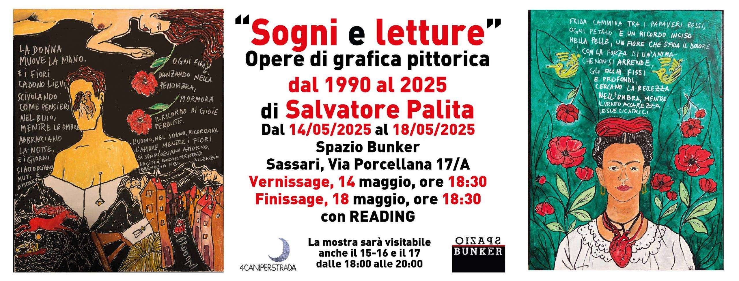 La mostra personale di Salvatore Palita: “Sogni e letture” sarà inaugurata mercoledì 14 maggio 2025 alle ore 18:30 presso lo Spazio Bunker, in via Porcellana 17/A, a Sassari.