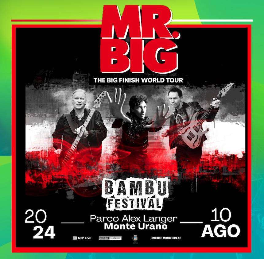 La band guidata da Eric Martin, Paul Gilbert e Billy Sheehan salirà sul palco del BAMBU’ FESTIVAL il prossimo 10 agosto 2024. La band sarà headliner di una delle giornate della kermesse che si svolgerà al Parco Fluviale Alex Langer di Monte Urano (FM).